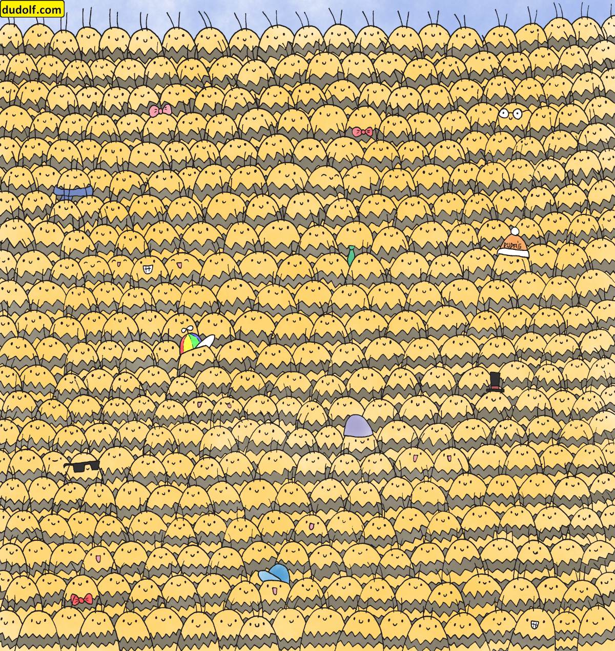 Para nuestro reto visual de hoy, les traemos nuevamente una creación del querido Gergely Dudás, el querido ilustrador húngaro mejor conocido como Dudolf. Como lo mencionamos, el desafío va de que debes encontrar a la abeja reina entre el gran enjambre que te mostramos en la imagen de acá abajito.