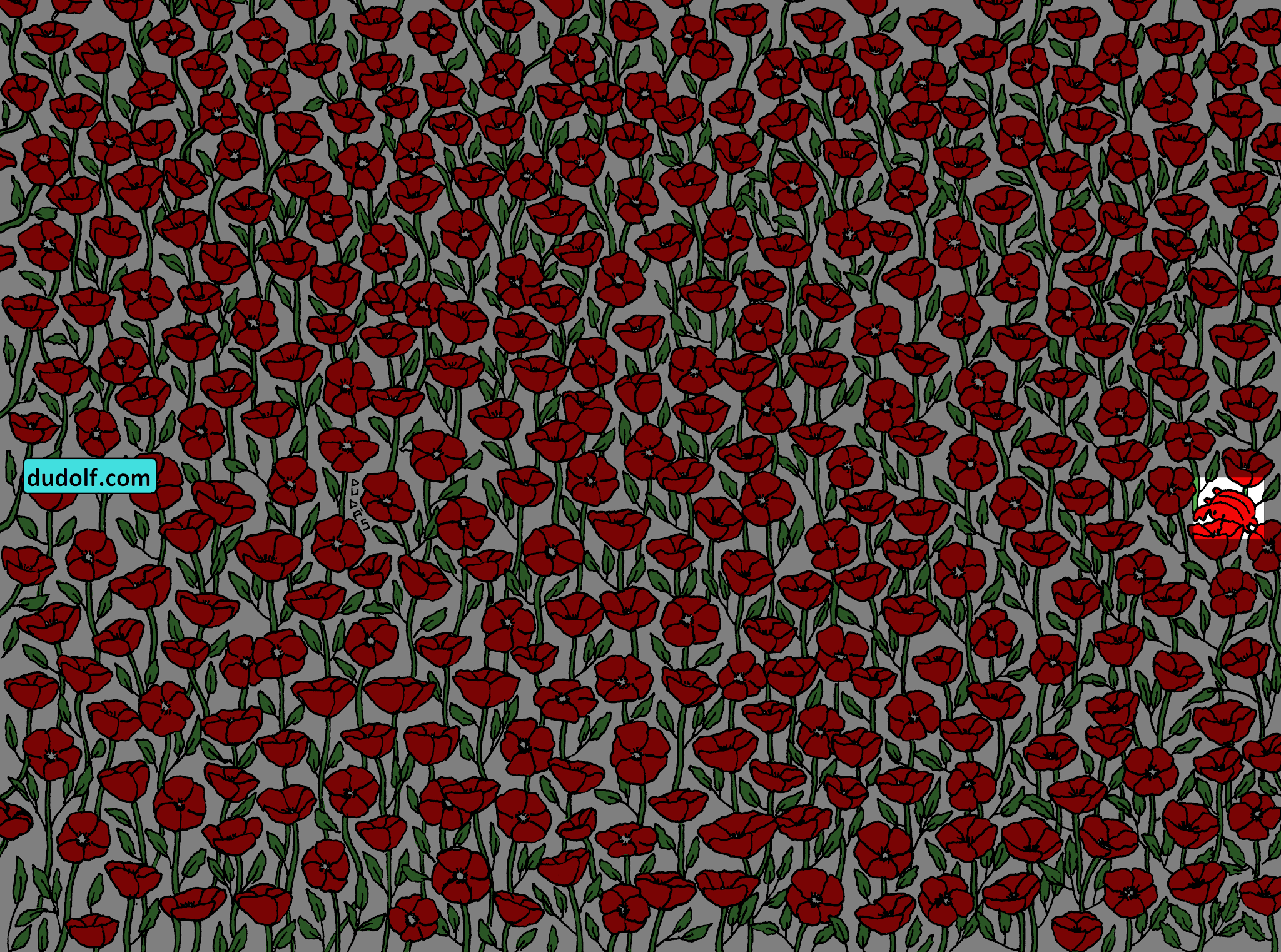 Una vez más traemos para ustedes una divertida imagen creada por el diseñador de Hungría Gergely Dudás, el siempre confiable Dudolf quien nunca falla cuando de armas desafíos de este tipo se habla. Para la ocasión, deben encontrar a un pequeño cangrejo que está bien escondido entre todas las flores de amapola de la siguiente ilustración.