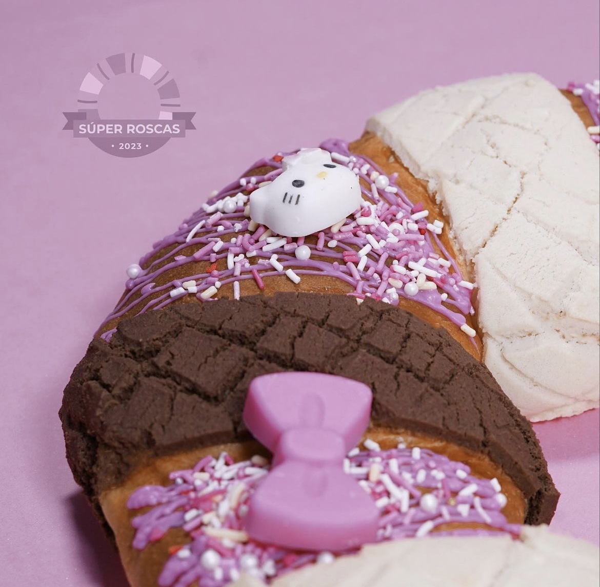 Continuando con los personajes icónicos que Japón nos ha dado, debemos mencionar una joya para todas las chicas kawai, ni más ni menos que la rosca Kitty. Y es que si ustedes son fieles seguidoras de la gatita de Sanrio, seguramente querrán comprarla para partirla el 6 de enero, pues tiene detalles bastante cute como sus moñitos y los colores que tanto la caracterizan: rosa y blanco. Y al igual que los demás panes de esta lista, al partirlo, hallarán una mini figura de Hello Kitty esperándolos.