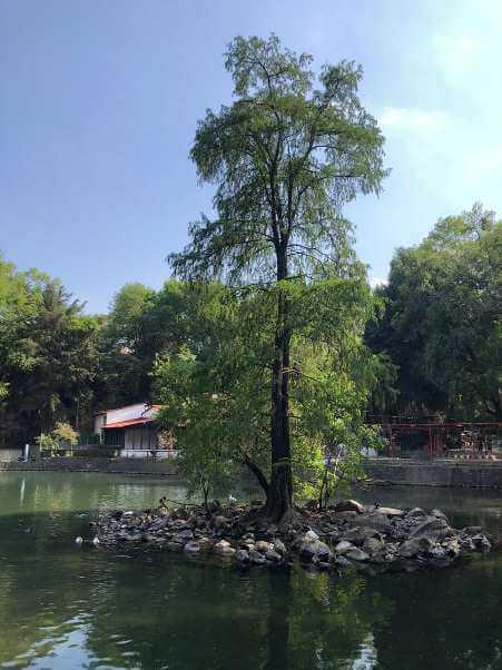 Ahí vamos a encontrar un refugio del ruido de la ciudad donde podemos darnos un respiro entre patos, tortugas y grandes ejemplares de árboles de eucalipto y algunos cedros que alcanzan gran altura.