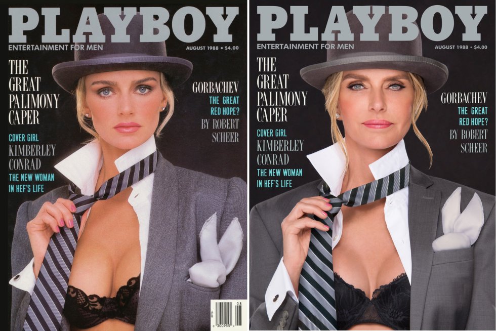 Aquí tenemos a Kimberley Conrad Hefner, quien fue la materia de sueños lujuriosos de varios a finales de los 80. Ahora cuenta con 54 años y la vemos elegantemente ataviada, tal y como lo hizo para la portada de agosto del 88. Por cierto, si el apellido les suena, es que Hugh Hefner no dejaba ni una para comadre: fue esposa del fundador de Playboy hasta 2010.