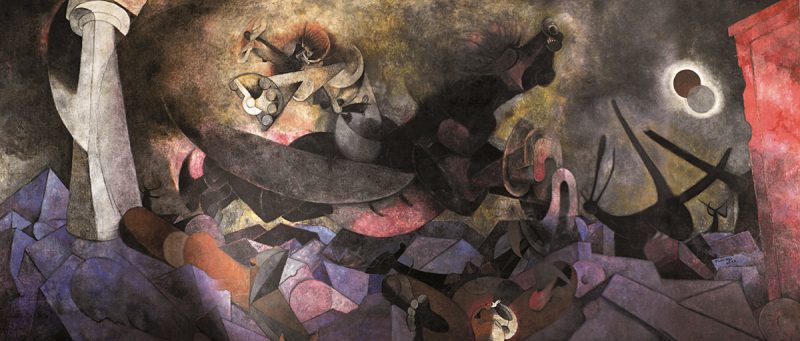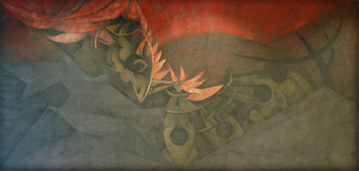 Haciendo uso de figuras antropomórficas y haciendo del color el protagonista. Acentuando sus proporciones precolombinas, sus obras derivaron en encargos para amplias decoraciones murales como: “El Homenaje a la raza”, “México hoy”, “América”, el mural más grande en el que trabajo, “Prometeo” y “Eclipse total”.