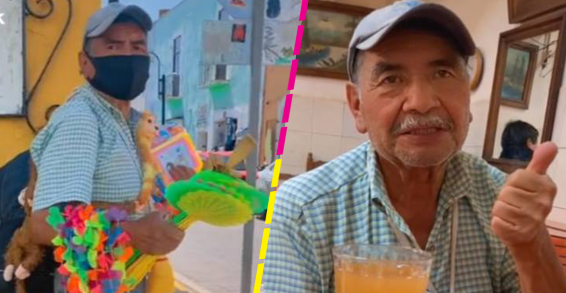 Fue a través de un video de TikTok donde este joven mostró su propia historia. En el clip se puede ver cómo se acerca a un comerciante, el cual andaba cargando juguetes de plástico y otros objetos de este mismo material. Bromeando, el tiktoker le dice “Buenas tardes señor, no se espante, pero creo que se le colgó un changuito atrás”, a lo que le responde que es parte de los juguetes que vende. Más tarde al preguntarle si ya comió, el hombre menciona que no porque apenas inició a trabajar.