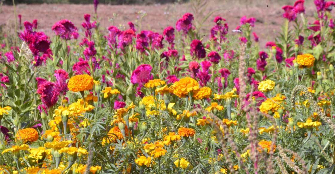 Este lugar con sus campos de cultivo es uno de los principales productores de cempasúchil y otras flores para la temporada de muertos en la región norte del país. Y aunque ha sufrido de temporadas de sequías, sus productores saben cómo salir adelante. Todas estas flores son repartidas entre florerías, mercados y otros comerciantes independientes para llegar hasta sus lugares correspondientes, donde llaman a los muertos con su aroma y su color.