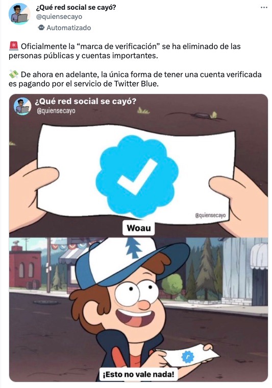 Si prefieren entrarle al pago anual, la suscripción es de $1520.00 pesos para que tengan la marca de verificación en sus cuentas. Ahí les dejamos el dato por si ocupan. Y ahora, vayamos a ver unos memes y las reacciones por la eliminación de las palomitas azules.