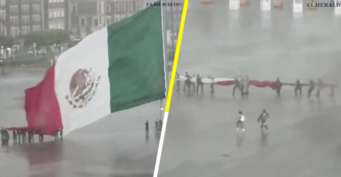 Como bien saben, la temporada de lluvias ha llegado a la CDMX y se ha dejado ir dura y tendida en la capital del país, algo que si bien ha ayudado a mejorar un poco la calidad del aire, también ha provocado algunas inundaciones en varias alcaldías. Pues bueno, el diario El Heraldo de México logró captar el momento en el que varios militares del Ejército Mexicano intentan quitar la bandera que está en el Zócalo capitalino, esto en medio de una fuerte lluvia.