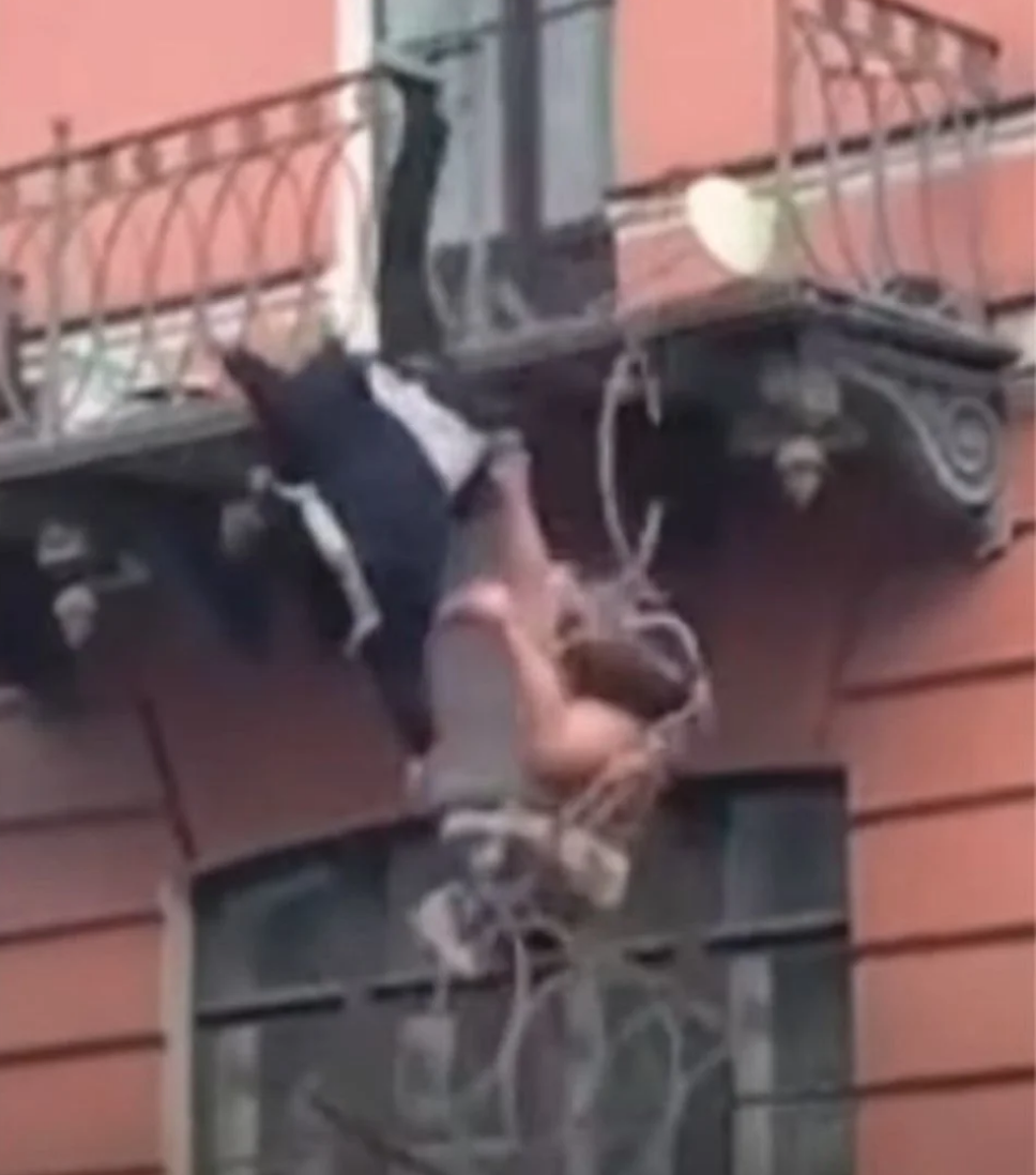 Pareja discute en balcón y cae de un segundo piso en Rusia pic.twitter.com/33rAFJWIGH