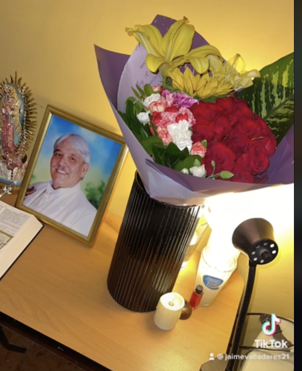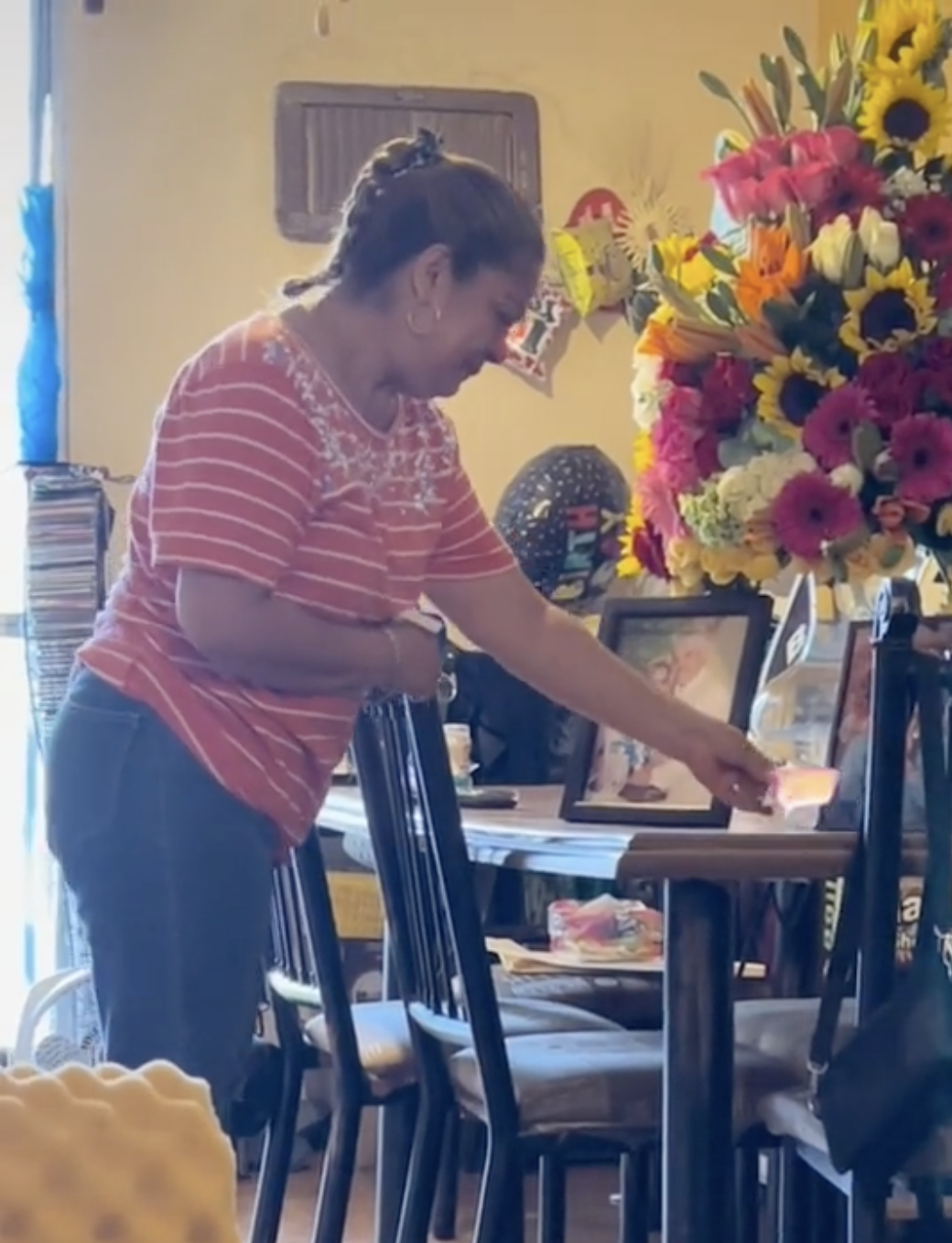 Y es que tanto Jaime como sus primos se organizaron para comprar y mandarle un arreglo de flores a su tía, el cual dejaron en un comedor con un par de fotos de sus tíos. Una escena que, al igual que a nosotros, hizo llorar a la mujer. ¡Qué hermoso!