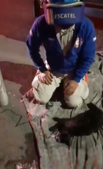 A través de un video publicado en la cuenta de Twitter de Protección Civil y Bomberos Zapopan, se difundió el momento en que un gato (que la neta se ve bastante afectado) recibe oxígeno mientras un paramédico lo cuida muy de cerquita y lo acaricia para levantarle un poquito el ánimo.