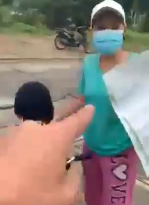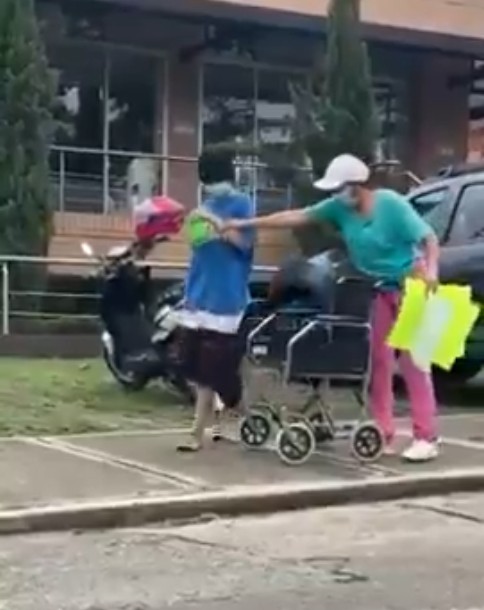 “¡Hey! Hágame un favor, ¿usted qué está haciendo con la niña? Mire que la estoy grabando hace rato, ¡cómo así, qué está haciendo, si yo las vi llegar hacer rato ahí bien, todo normal! ¿Qué pasa?”, reclama el testigo. “Usted no se meta en lo que no le interesa… vaya a ser su oficio”, le responde ella.