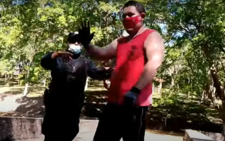 “Te acercaste a mí cuando yo ni siquiera te volteé a ver, yo venía en mi rollo de hacer ejercicio, venía tranquila. Tú te acercaste a mí y me apretaste la nalga”, le reclama la mujer en presencia de un par de oficiales. El tipo, como tratando de que no le sigan diciendo sus verdades cara a cara, se limita a agachar la cabeza y pedirle a la mujer que detenga la explicación: “Sí, sí, ya sé lo que pasó”.