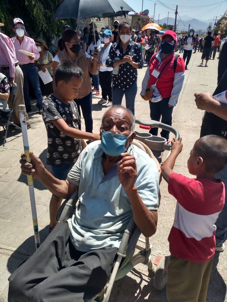Los menores, de sólo 11 y 7 añitos de edad, llegaron al punto de vacunación en el municipio de San Isidro Monjas empujando con sus pequeños brazos la carreola donde viajaba su abuelito. Y ante la sorpresa del personal del lugar, dijeron —con mucho orgullo—, que ellos eran los responsables de él.