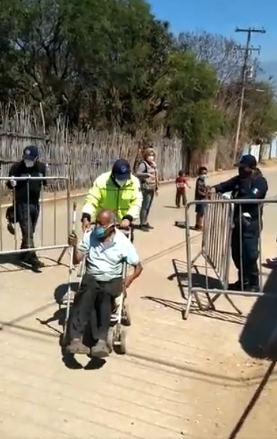 La historia fue documentada por la periodista oaxaqueña Paulina Ríos, quien compartió a través de su cuenta de Twitter una foto y un video donde vemos a los menores cuidando de su abuelito, quien está sentadito en la carreola para bebé a la espera de la vacuna.
