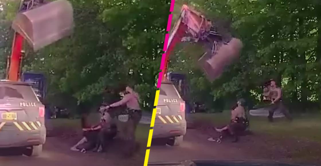 El video que se hizo viral en redes muestra cómo uno de los policías forcejea con Brandon y Amy en el suelo, mientras el otro intenta tranquilizar a Wayne, quien dirigía la excavadora hasta los policías. Luego de un rato de aparentemente dialogar, se puede ver al señor Tallman moviendo la enorme pala de metal de la máquina hacia los elementos de seguridad, mismos que reaccionaron alejándose un poco (de paso, llevándose un buen susto).