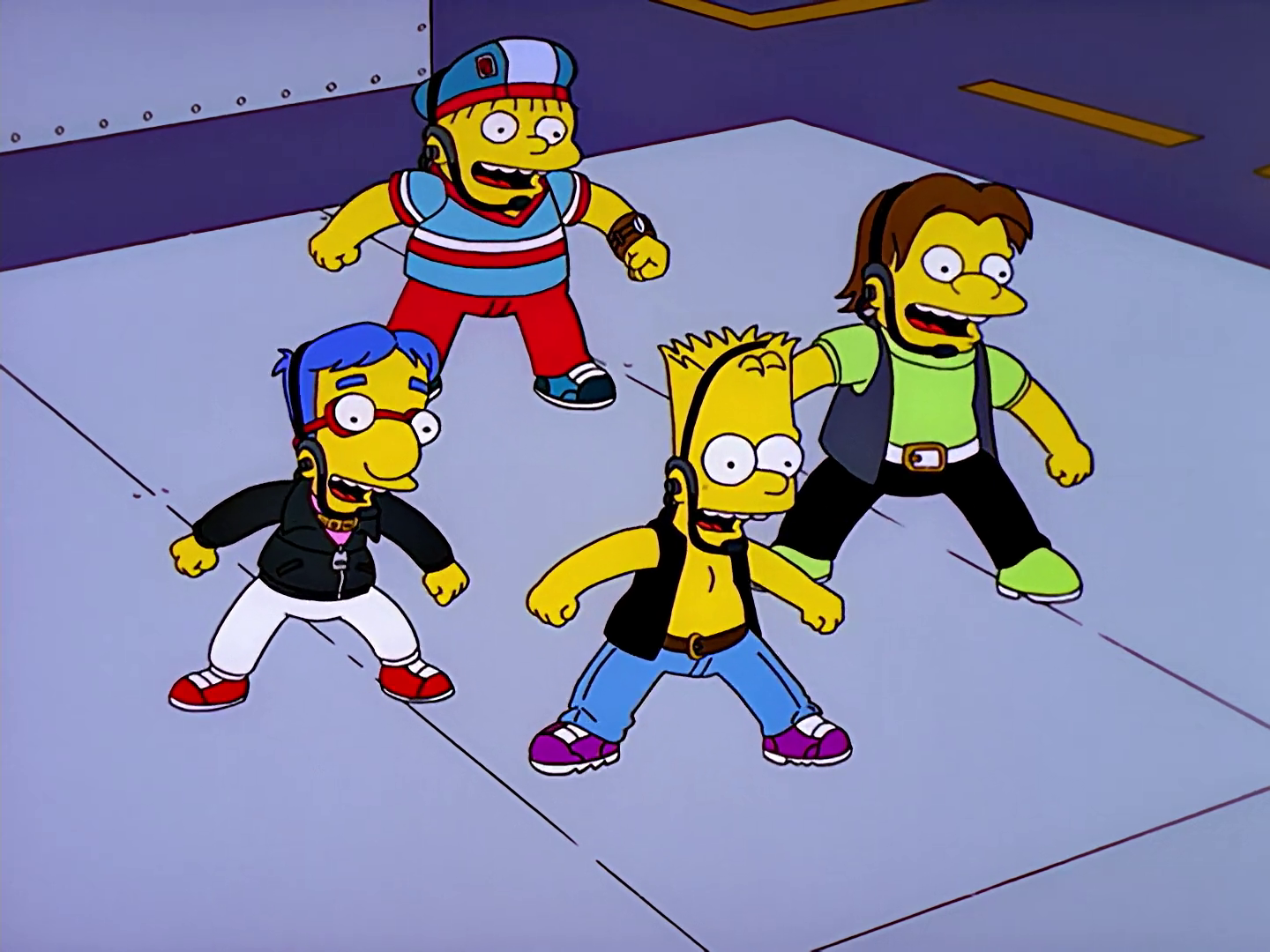 Pero uno de los episodios más memorables es cuando apareció NSYNC en “New Kids on the Blecch” de la temporada 12 porque nos dieron un cameo y al mismo tiempo crearon una banda. Aquí, un teniente de la marina recluta a Bart, Milhouse, Rafa y Nelson para convertirlos en estrellas de pop como parte de una boy band llamada Party Posse. Desde luego, utilizan un modulador de voz que les da el éxito que L.T. Smash buscaba.