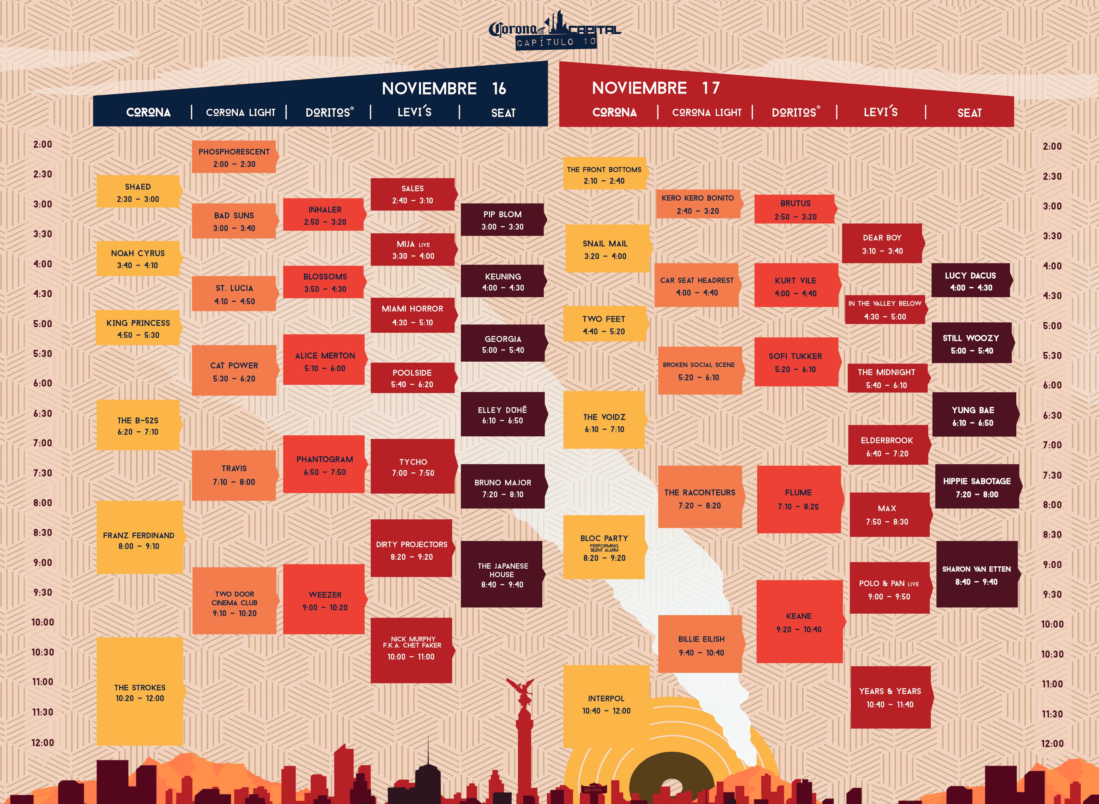 Una vez que pasabas esto, iniciaba oficialmente el camino para el Corona Capital, aunque aún faltaba una cosa muy importante por conocer: los horarios. De esto dependía la misión y lo más importante era ponerte de acuerdo con tus cuates o quien fuera que te acompañara al festival para que así todos vieran a las bandas que querían y anduvieran felipes y con tenis.