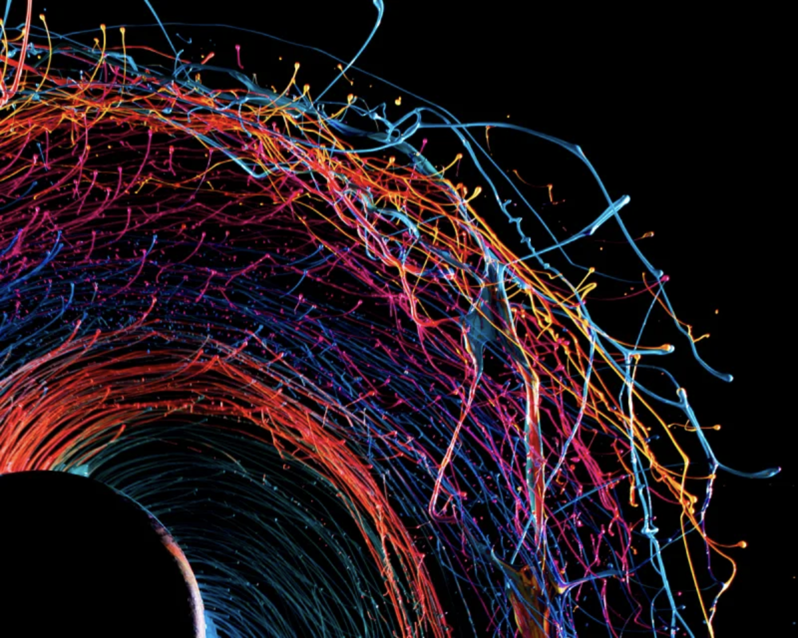 En su último trabajo, pone una variedad de pinturas de colores sobre una varilla conectada a un taladro eléctrico para producir algunas tomas notables de fluido en movimiento.