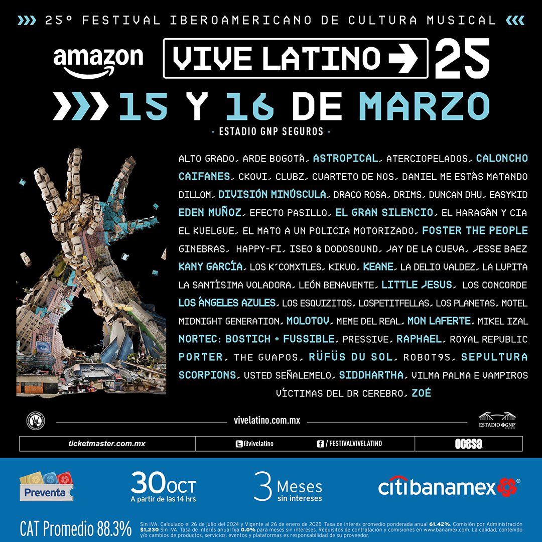 En 2025, el Vive Latino festejó sus 25 años de existencia y por supuesto que tiraron la casa por la ventana. En esta ocasión, el cartel contó con nombres como Caifanes, Foster the People, Keane, Los Ángeles Azules, Little Jesus, Mon Laferte, Molotov, Rüfus Du Sol, Scorpions, Zoé y más. Y vaya que festejamos como se debía a uno de los festivales más importantes y queridos de nuestro país.