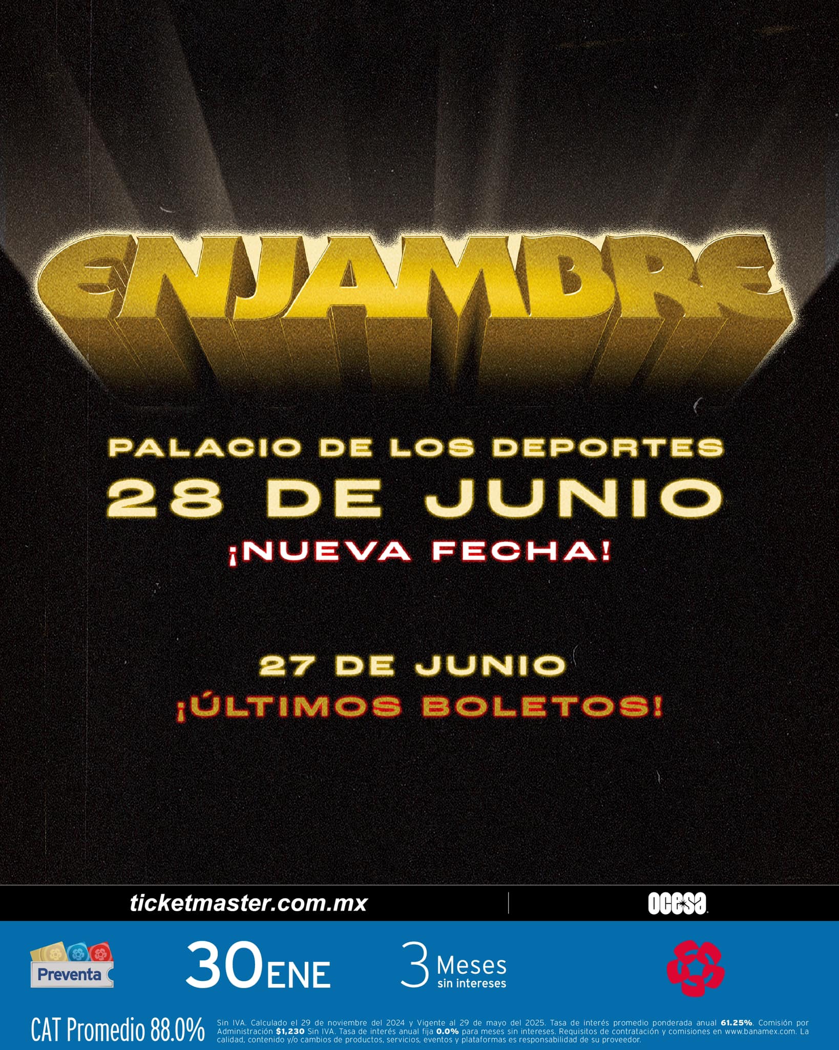 Tras una temporada tocando con su show acústico de Noches de Salón, Enjambre volverá a dar conciertos en formato eléctrico y lo harán a lo grande, con dos fechas confirmadas en el ‘Palacio de los Rebotes’ en la capital chilanga.