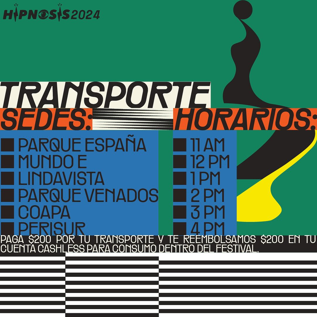 En cuanto al transporte, armarán viajes redondos desde 5 rutas estratégicas de la CDMX y en diversos horarios de salida para que todos los que se lancen al festival regresen seguros a casa. Estas son las rutas del transporte de Hipnosis 2024: