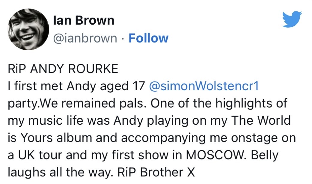 El vocalista de Stone Roses, Ian Brown, recordó haber conocido a Andy Rourke en una fiesta cuando tenía 17 años y seguía siendo su amigo después de todo ese tiempo. Así que como verán, estamos ante una de las pérdidas más grandes que ha tenido la música británica en mucho tiempo.
