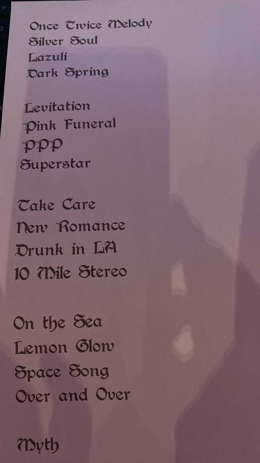 El dream pop espacial de la banda justifica la decisión, y es que rolas como “Pink Funeral” o “Lazuli” usaban los colores en sus títulos, con matices y sombras, para envolvernos con un elemento esencial de la experiencia de la banda en vivo. No faltaron los visuales espaciales, ya que desde “Levitation” se mostraron estrellitas detrás de la agrupación, lo que literalmente nos destellaba cuando las canciones explotaban.