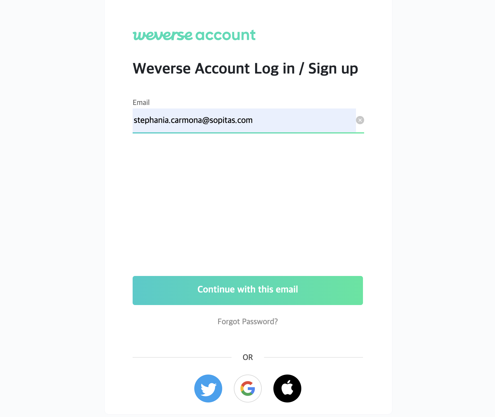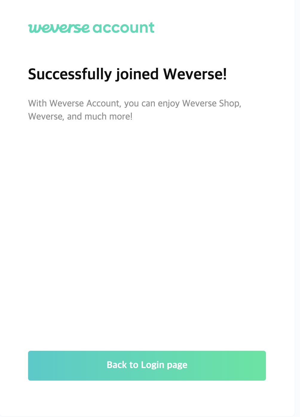 Llenen los datos correspondientes (mail, user y contraseña) y después confirmen su mail con el correo electrónico que les llegará. Cuando tengan la confirmación de su cuenta (dirá “Successfully joined Weverse“), entonces ya se van a la página de inicio.