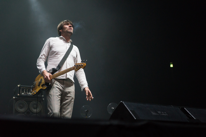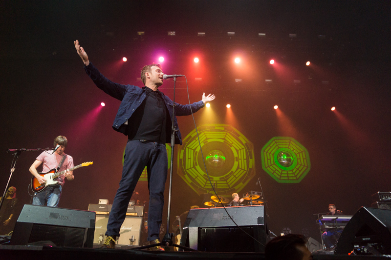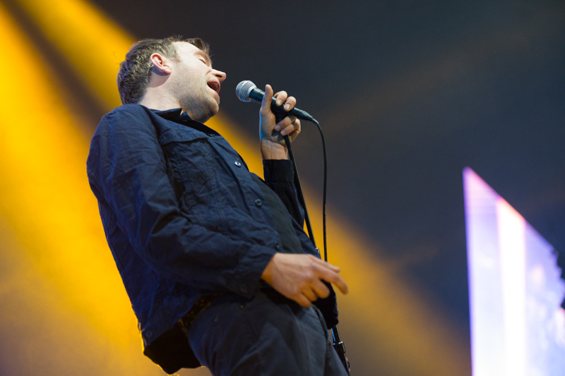 Blur abrió su set con la marcha espacial de “Go Out”, seguida por “There’s No Other Way”, luego “Lonesome Street”, y luego “Badhead”, y luego “Ghost Ship”… y bueno, así se fueron durante la primera mitad del set: una nueva, una oldie, una nueva, una oldie–PERO si tú eres solo un fan casual de Blur que realmente no está familiarizado con su material, pues seguro nunca ibas a imaginar que entre “Lonesome Street” y “Badhead” hay veinte años de diferencia. ¡VEINTE AÑOS! Y quiero resaltar este punto porque ahí reside el encanto de esta banda. El oído casual fácilmente puede asumir que estas dos canciones podrían estar en el mismo álbum, ¿por qué? por ese sonido tan particular y único que tiene Blur, el rasgo distintivo que caracteriza a toda banda excelente. En mi opinión: los riffs de Graham Coxon, las melodías de parque de diversiones, y claro, la irreverencia del señor Albarn.