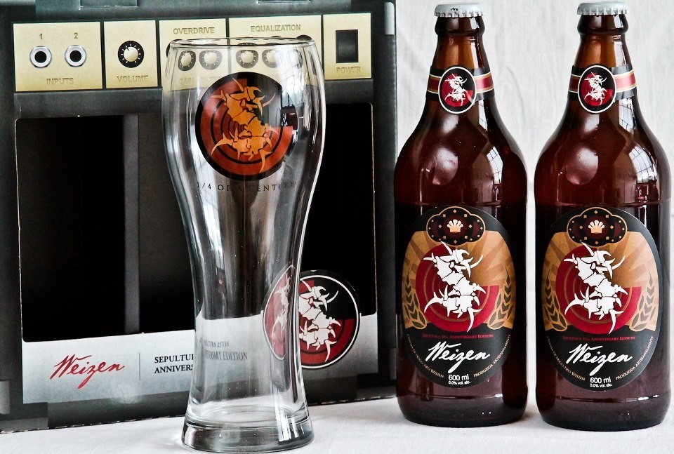 Para celebrar sus 25 años de carrera, Sepultura lanzó a la venta la Sepultura Weisen, hecha de dos ingredientes nada comunes: plátano y clavo. Lo sabemos, esta extraña combinación creada por la banda y la cervecería brasileña Bamberg, no se escucha muy apetitosa, sin embargo pocos fueron los que pudieron comprobarlo, ya que la producción de esta chela tuvo sólo un lote en el 2012. En la actualidad puedes encontrar algunas botellas a la venta en la web, digo, por si de plano se mueren por probarla.