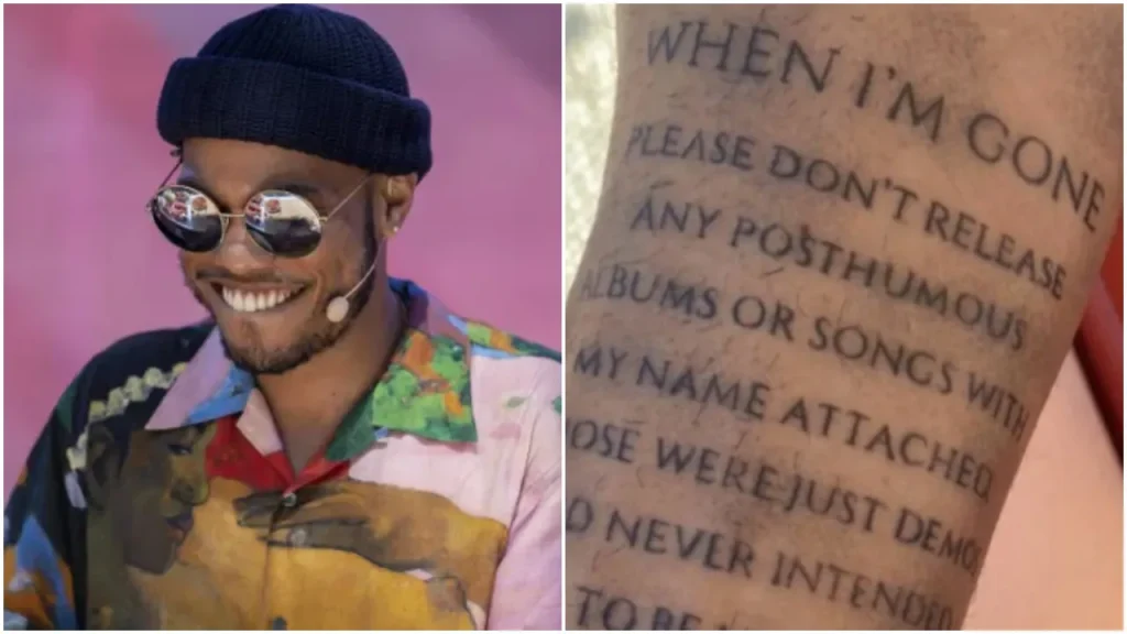 El caso de Mac Miller puso en el centro de la conversación el respeto al fatalismo de la muerte, tanto así, que Anderson Paak. hizo una genialidad y se tatuó lo siguiente, para evitar que liberen música si muere de pronto: