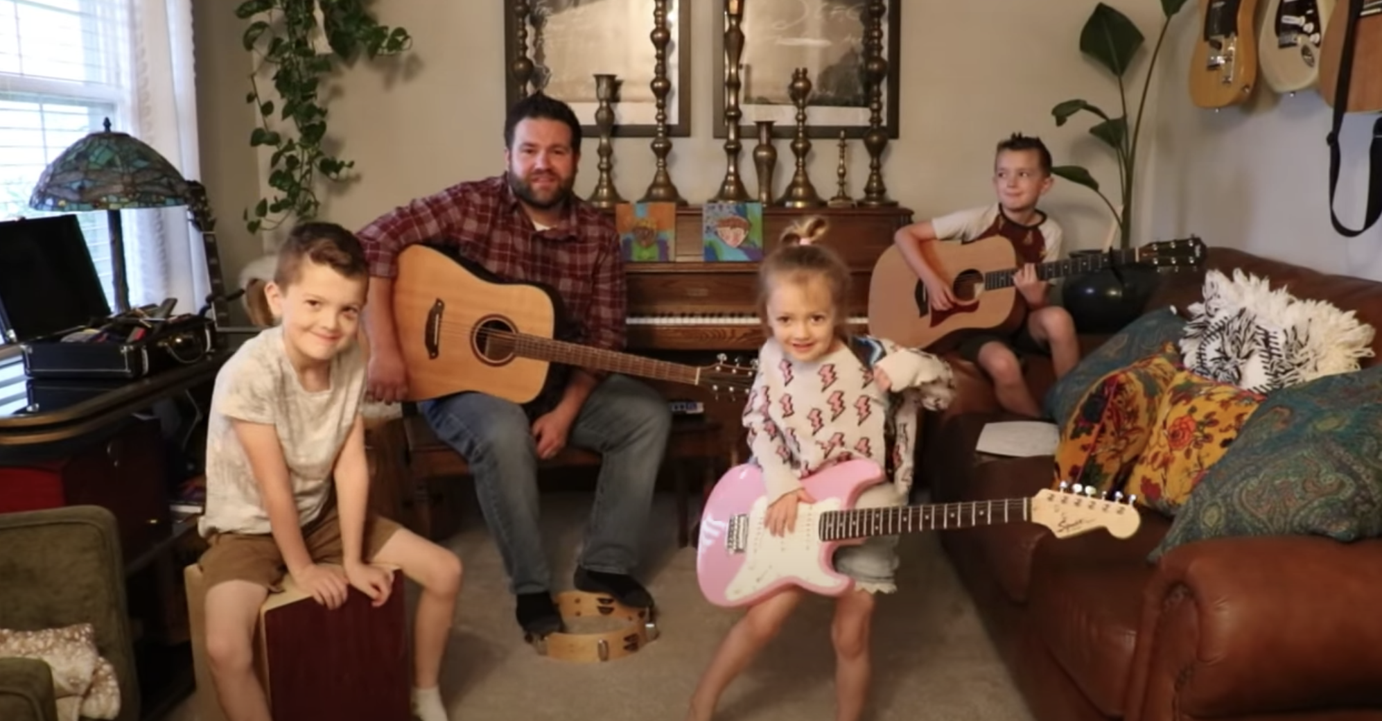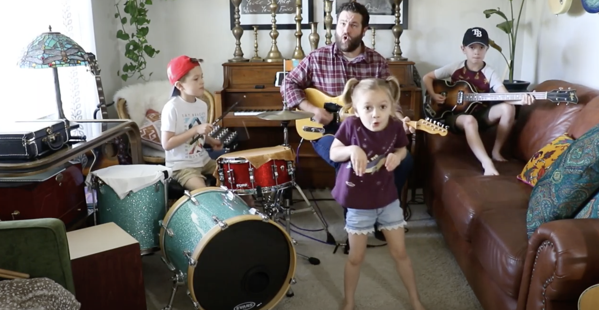 Clark continuó: “Este es el día 31 de nuestra reunión familiar nocturna. Les enseño a los niños una canción por la mañana, la tocamos un par de veces y luego la grabamos por la noche. Las canciones están lejos de ser perfectas, pero nos estamos divirtiendo mucho haciéndolo”.