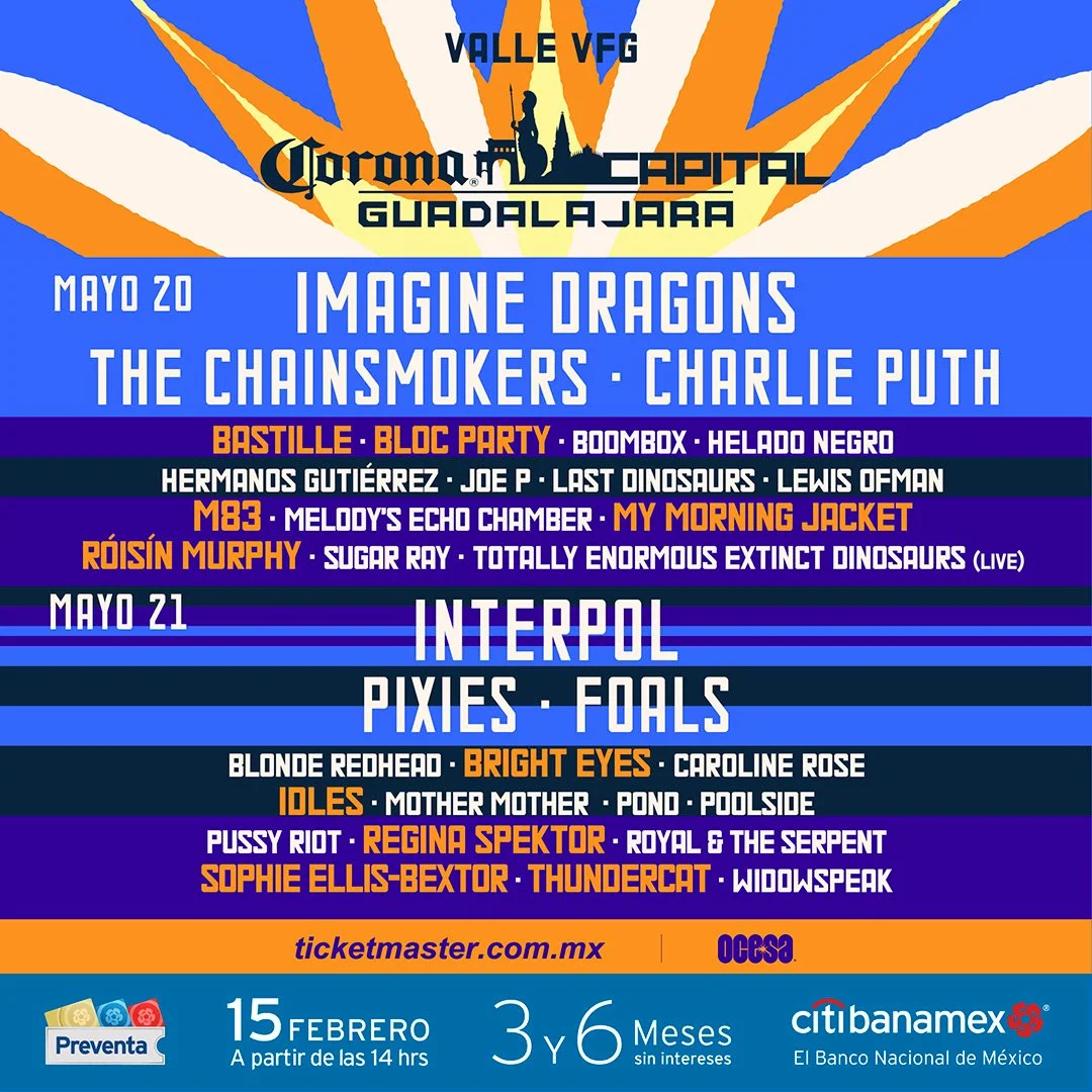 ¡Por fin llegó! Este fin de semana estaremos disfrutando del Corona Capital Guadalajara 2023 y estaremos bailando al ritmo de M83, Imagine Dragons, Foals y muchas bandas más. Si te vas a lanzar al Valle VFG checa esto para que no llegues desprevenid@; pero si no, no te preocupes porque vamos a tener el livestream aquí mismo para que lo veas desde tu laptop, pc o hasta smartphone.