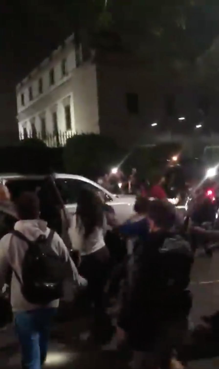 En varios videos que fueron grabados por fans –y los cuales han sido compartidos en redes sociales– se puede ver a Dua Lipa saliendo del edificio mencionado rodeada de su seguridad. Aunque en un principio se aprecia que los fans nomás se conforman con verla y no intentan hacer nada, una joven de playera blanca no lo piensa y corre hacia la cantante.
