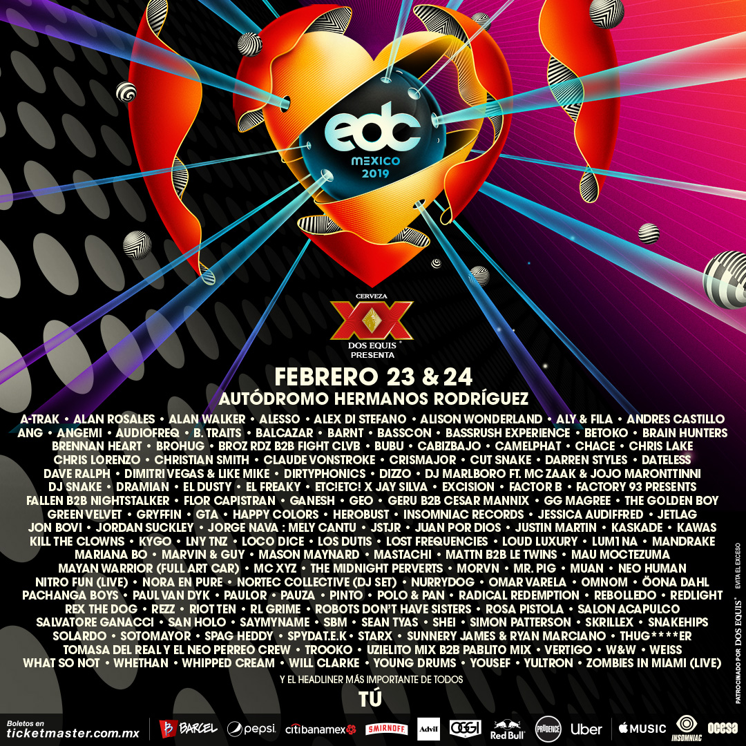 La lista de talento del Electric Daisy Carnival (EDC), México está compuesta por: