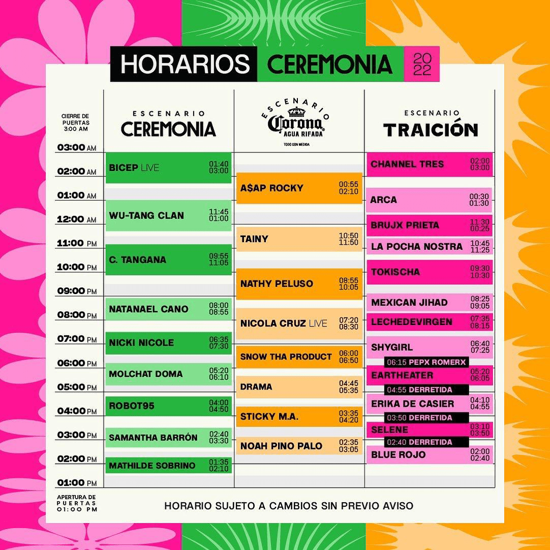 Entre las mejores presentaciones hemos de mencionar a los headliners: A$ap Rocky, Wu-Tang Clan y C. Tangana, quienes se llevaron los escenarios más llenos posterior a la energía que acumularon actors como los de Nicki Nicole, Natanael Cano y Molchat Doma en el escenario Ceremonia, Nathy Peluso y Snow Tha Product en el Corona, y Arca y Tokischa para el Traición.