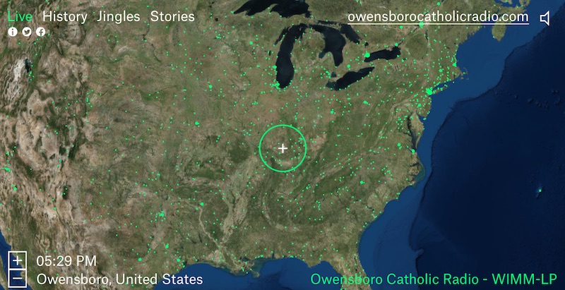 Al igual que las playlist de Spotify a nivel mundial, solo basta con desplazarse hacia algún lugar, y aparecerán las estaciones disponibles en cierto rango a la redonda, con opciones a elegir. Además de otras funciones interactivas como “History” que te permite escuchar algunos clips a lo largo de la historia, de transmisiones que trataron de rebasar fronteras en algún momento.