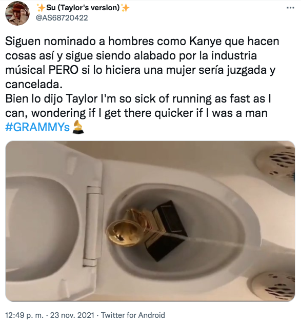 Para empezar, muchos mencionaron que Kanye West no debería estar nominado en los Grammy 2022 por su más reciente disco, el controversial DONDA, ¿la razón? Bueno, pues quizá no lo recuerden pero en septiembre de 2020 se quejó de la premiación y para mostrar su descontento publicó un video donde orinaba uno de sus premios (POR ACÁ les contamos cómo estuvo todo). Sin embargo, él no fue el único por el que el publico se estaba quejando de la ceremonia.