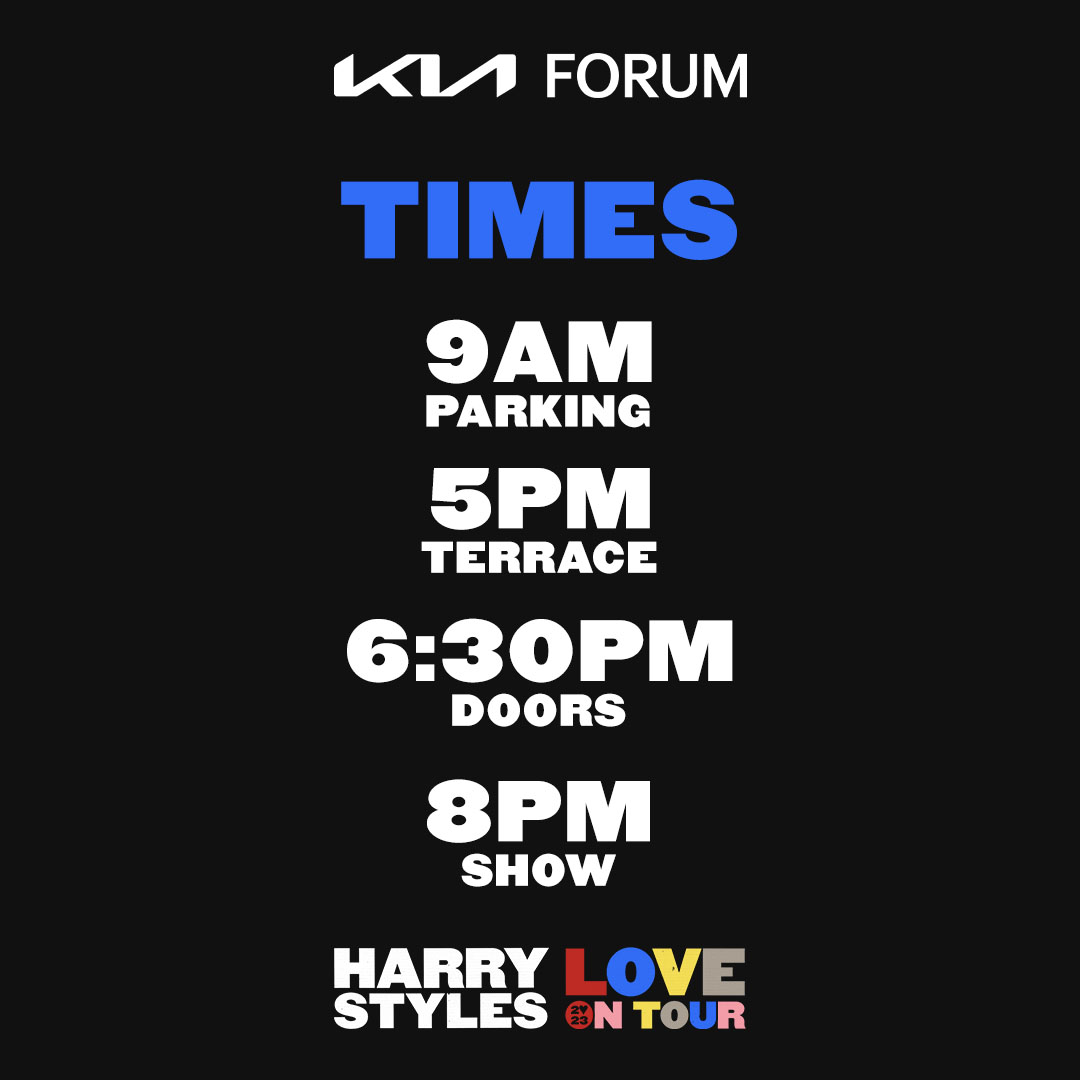 Los tres conciertos de Harry Styles en Los Ángeles están programados para las 8 de la noche. No obstante, el estacionamiento abrirá a partir de las 9 de la mañana y los asistentes podrán ingresar al recinto desde las 6:30 de la tarde.