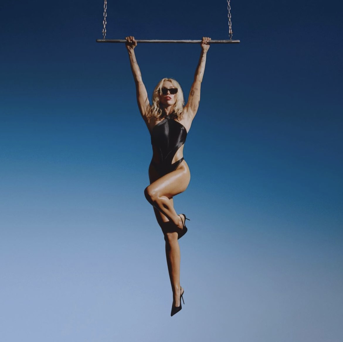 Además de confirmar el nombre de su nuevo álbum, Miley Cyrus aprovechó para revelar la portada, en la cual podemos verla con un mono negro, lentes de sol y tacones, balanceándose desde una barra de trapecio sobre un fondo azul intenso. Aunque eso sí, hasta el momento no ha confirmado el tracklist oficial ni tampoco sabemos si el disco contará con colaboradores/artistas invitados.
