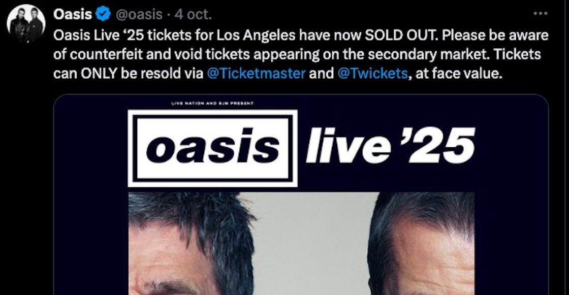 ¿Y esto aplicará también en los boletos para los conciertos en México? Por el momento no se ha anunciado… pero no hay que descartar que pase. No sólo por los promotores: en las redes de Oasis han pedido a los fans que no compren sus boletos en sitios de reventa. Así que sí ya lo hicieron, sientan mieeeedo…