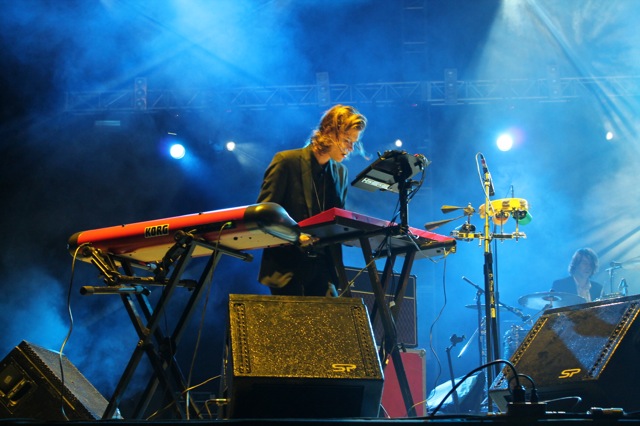 Llegó el turno para los franceses… pero de M-83. Para ser un concierto netamente electroson, esta banda aportó el toque de las guitarras y la voz femenina. Anthony Gonzalez, Yann Gonzalez, Morgan Kibby y Loic Maurin fueron la energía que la banda necesitaba, pues ante la máxima concurrencia que se dio en la pista, era difícil ir a comprar bebidas (agua, refrescos) y las piernas ya temblaban de cansancio y algunas espaldas ya dolían.