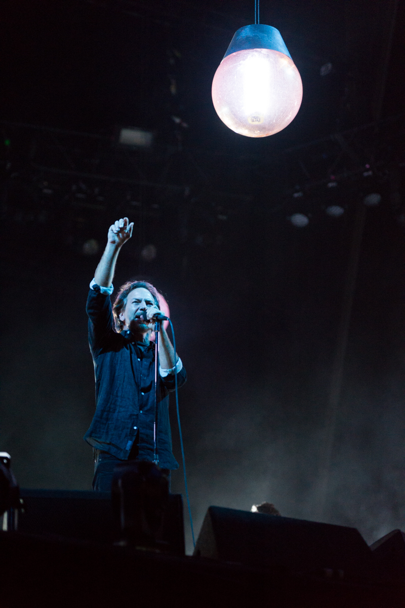 “Pendulum” y “Release” fueron la primeras canciones que recibió la audiencia que estaba ávida de disfrutar las canciones de Pearl Jam, tanto, que en la segunda ya se podían ver los encendedores iluminando a todo el Foro Sol. Los primeros riffs más pesados de la guitarra llegaron con “Why Go”, que también llegaron acompañados de los primeros “toques”, ya que el olor de la mariuhuana comenzó a inundar el ambiente, sin importar que fuera en pista o en gradas.