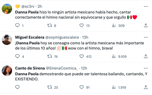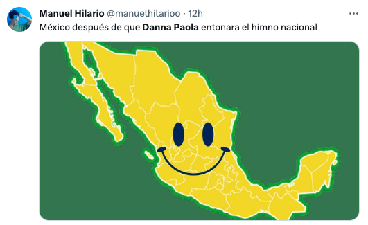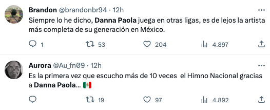 En fin, para que vean que no decimos esto nomas’ por quedar bien, acá les dejamos algunas de las reacciones que ha dejado la gente en redes sociales como X sobre Danna Paola y su manera de entonar el himno de nuestro país en Las Vegas: