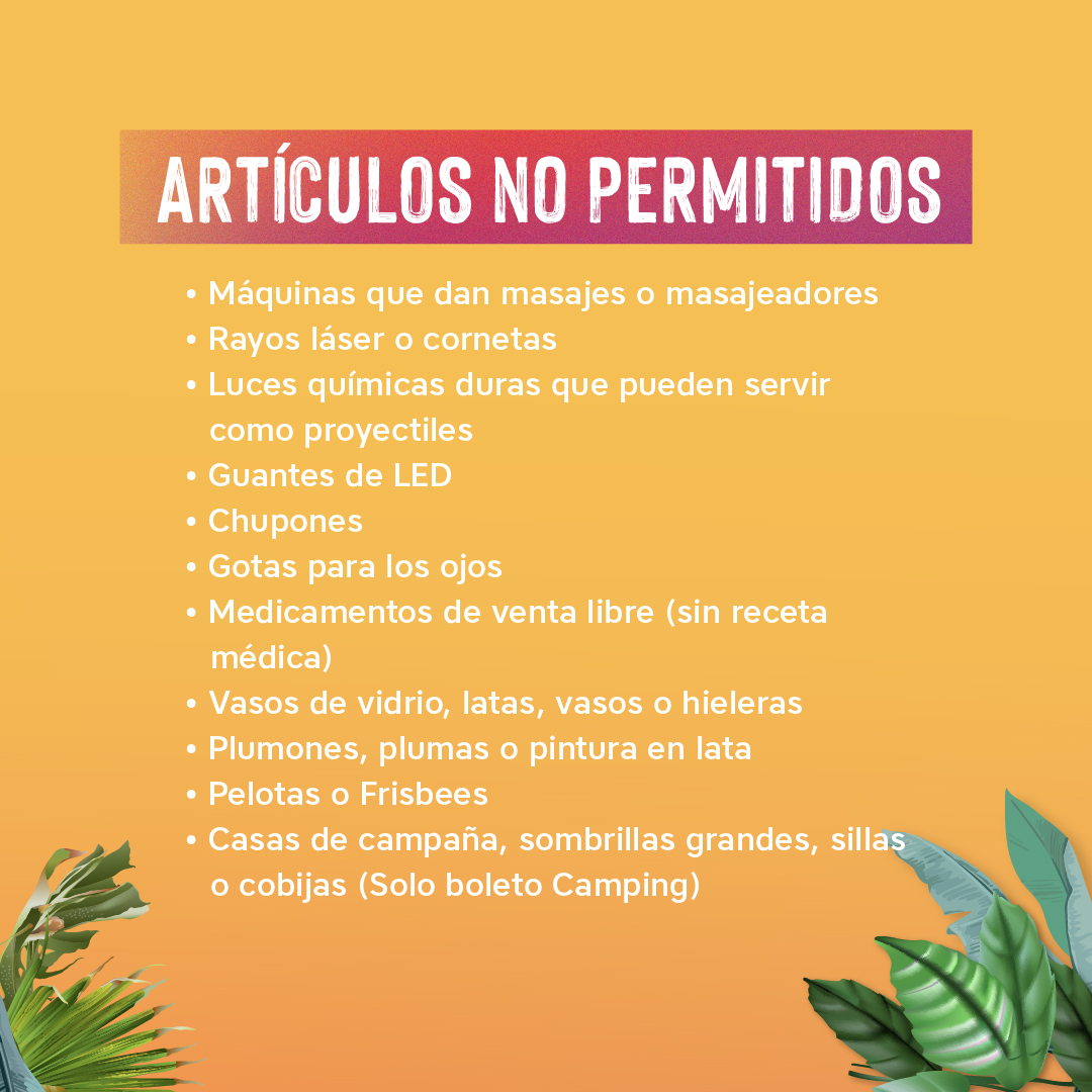 Último consejo/recomendación rumbo al Vaivén 2023. No se te olvide checar la lista de objetos permitidos y no permitidos para el festival. Aunque no lo crean, nunca falta el olvidadizo que deja pasar esta parte y al final, no lo dejan entrar al evento.