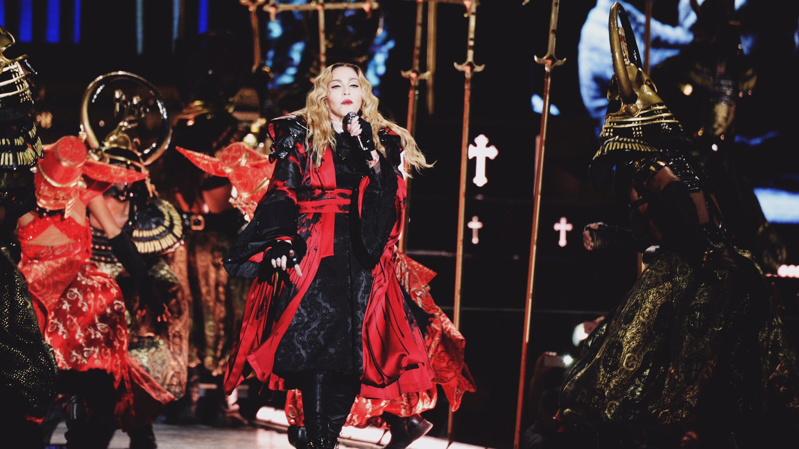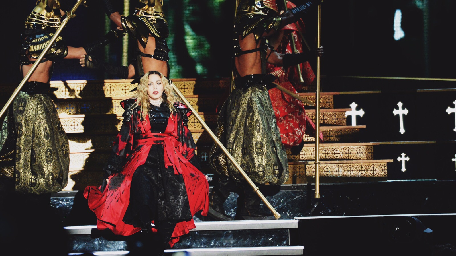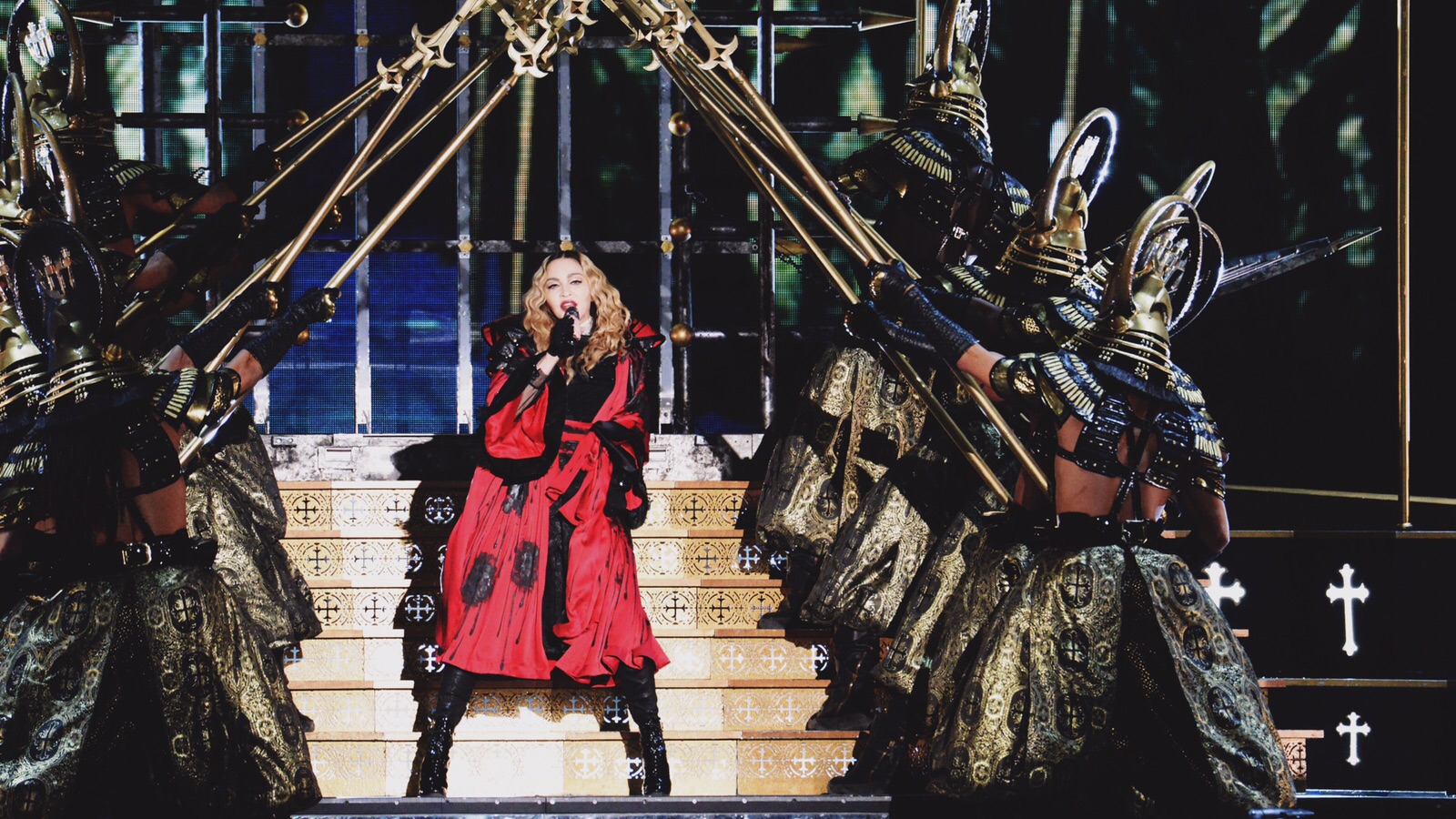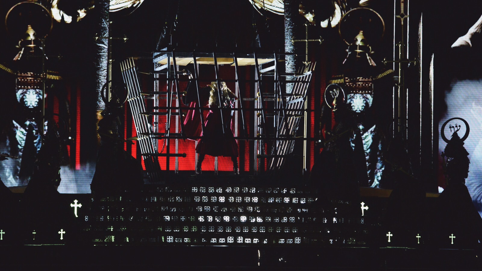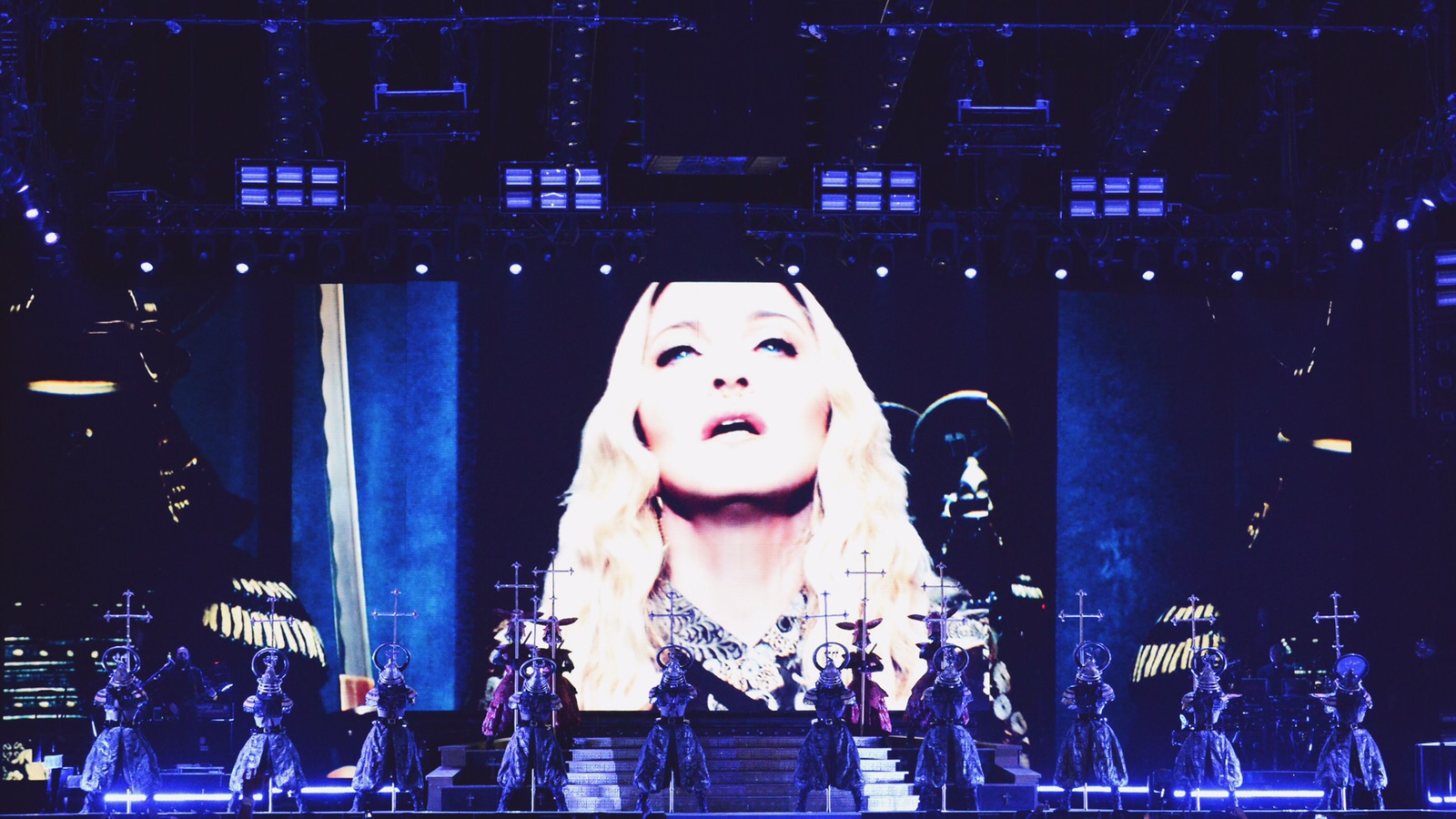 El show es impresionante, comenzando por los cambios de vestuario y escenario que giran en torno a cuatro temáticas; la primera con una estética Samurai, interpretó canciones como “Joan Of Arc”, “Devil Pray”, “Bitch l’m Madonna”, “Burning Up” y “Holy Water”. Las coreografías, junto a su grupo de bailarines, son parte esencial del mismo. Parte importante fue la temática religiosa, con enormes bastones en forma de cruces, y donde La Reina se sienta en la piernas de un hombre vestido como padre, además de una enorme mesa que simulaba La Última Cena.