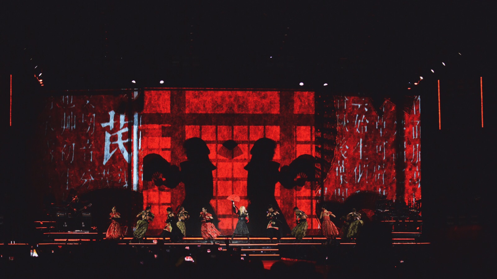 En ocasiones también tomaba su guitarra para dejar las coreografías atrás, e interpretaba sola algunos temas al centro del escenario. Como en la última temática, que era una combinación entre latino y español, salió vestida de torera y después sus bailarines con vestidos típicos mexicanos, en homenaje a la pintora mexicana Frida Kahlo, de la cual se dijo que es fanática y le dedicó dos canciones porque mencionó que siempre ha sido una inspiración para ella. Cabe destacar que en ocasiones hablaba en español, y hasta se dirigió a uno de los asistentes del público llamado René para pedirle que se casara con ella.