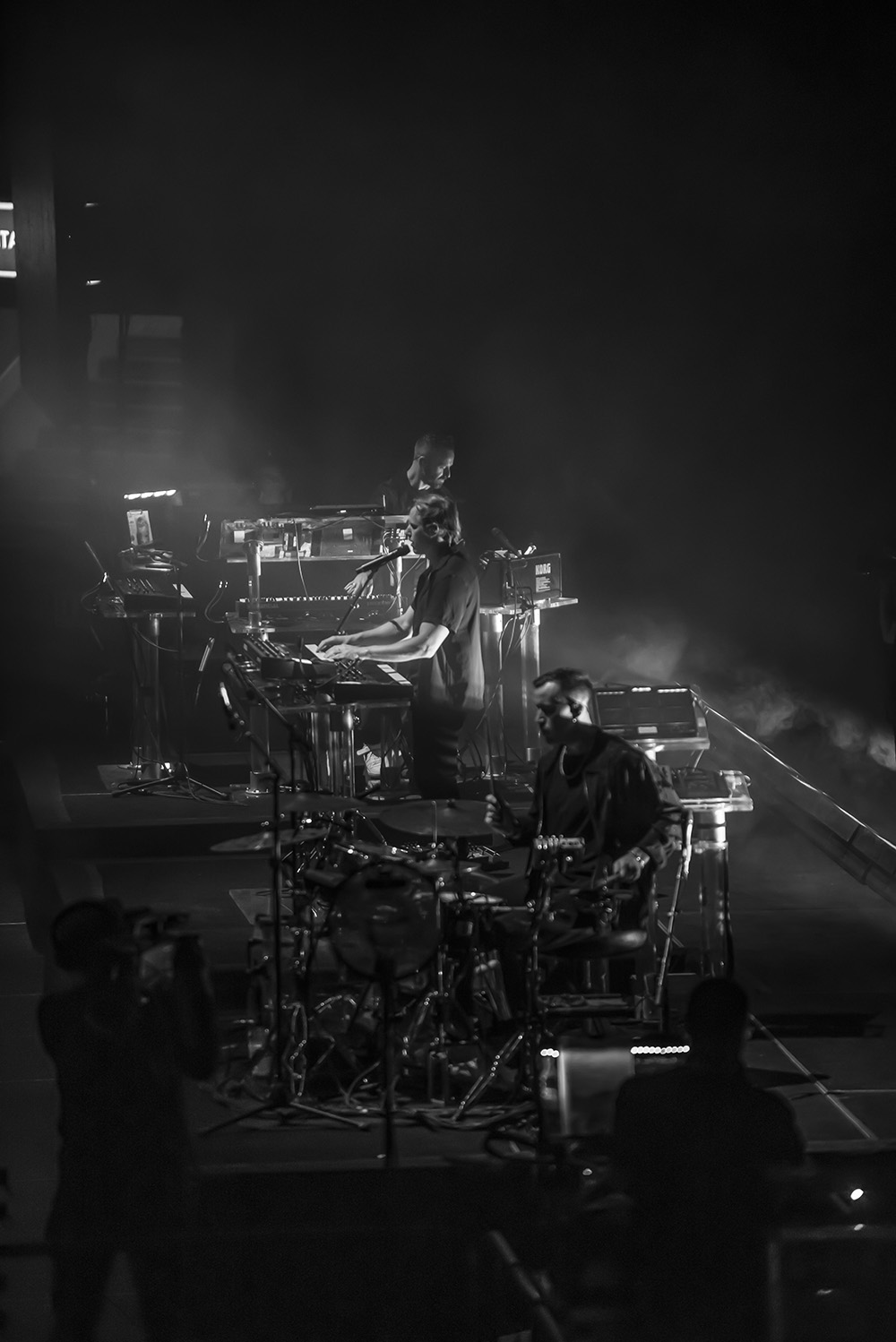 Es algo raro para una banda de electrónica, pero el cuarteto se rifa en vivo con todos los elementos de sus rolas. La batería de James Hunt aporta muchísimo en el show con remates que no están en las versiones de estudio (es en serio, hasta se avienta solos de percusiones).