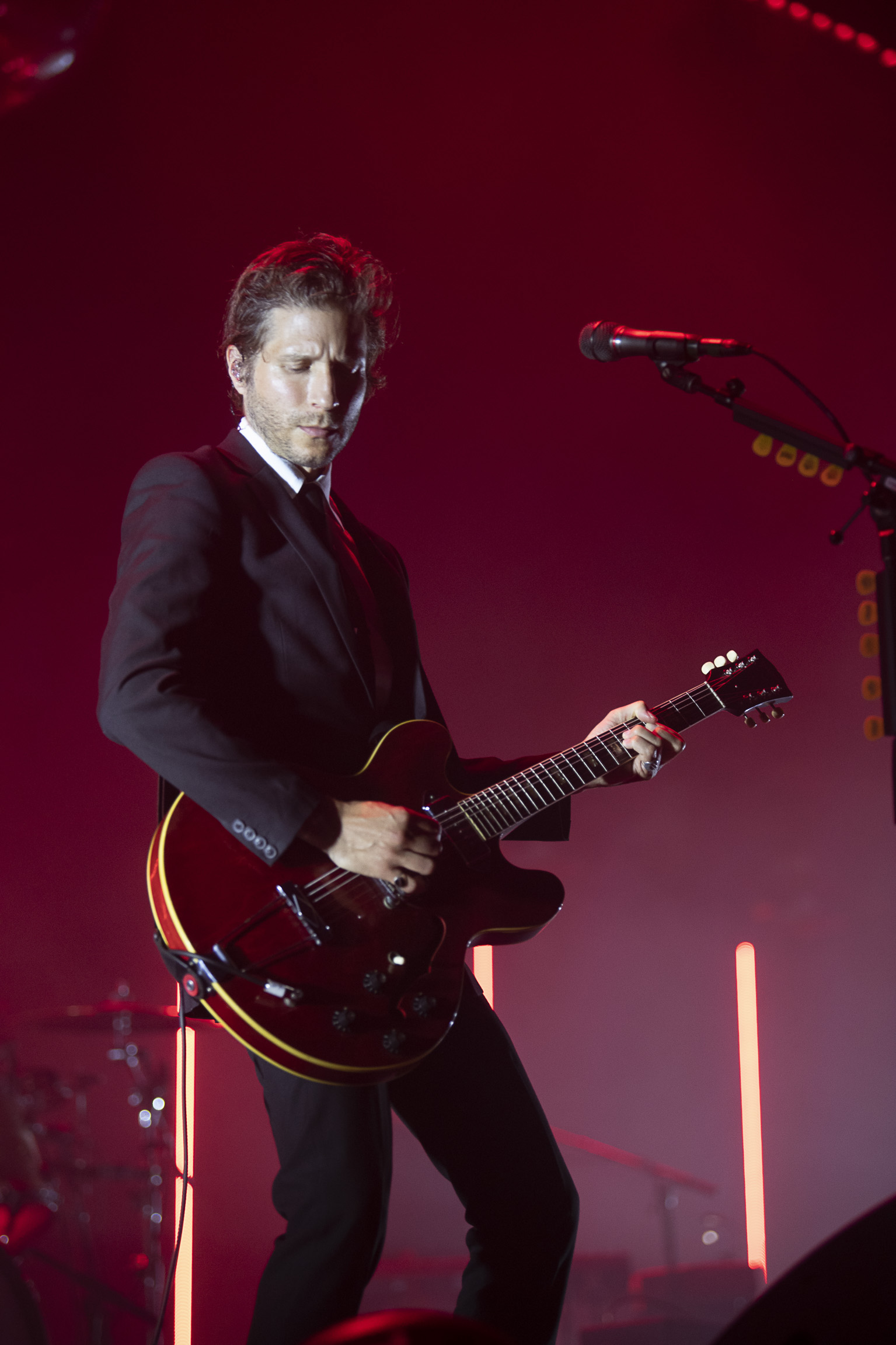 Una ejecución casi perfecta —excepto por una parte en la que tuvieron que repetir—, las luces adecuadas que no necesitaban mucho pues, la música fue lo que mantuvo al público al filo de sus butacas, fue ella la culpable de que levanten las manos, que se muevan de un lado a otro, que sientan hasta la última fibra de su ser y sienten esas letras, esas guitarras, batería y bajo pero sobre todo, la voz de Paul Banks.