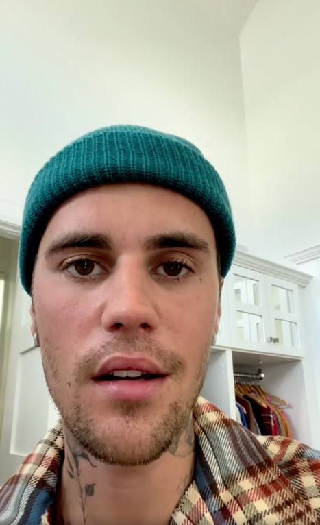 En el video, se puede ver al cantante canadiense con la mitad de su rostro paralizado. Incluso, señala cómo no puede parpadear ni sonreír, o mover la fosa nasal del lado afectado. En otras publicaciones, Bieber ha manifestado su frustración, pues comenta que se le dificulta comer y las cosas han empeorado.