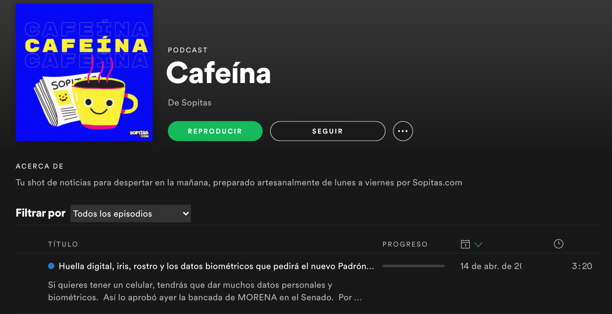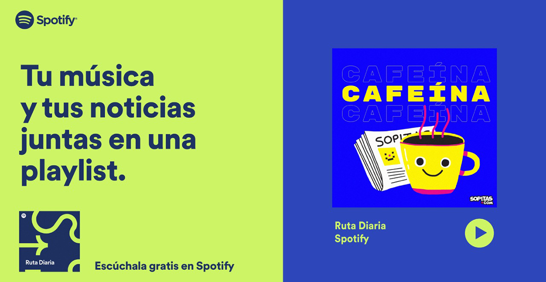 Por supuesto que por acá en Sopitas.com no podíamos quedarnos atrás, es por eso que también le entramos a Ruta Diaria a través del podcast de Cafeína. Por acá te presentaremos todas las noticias que necesitas saber para arrancar el día y que claro, podrás escuchar junto a las canciones y artistas que más te laten. Ya puedes encontrar esta función en el inicio de tu cuenta en Spotify, ¿qué esperas para probarla?